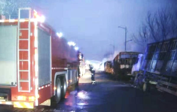 經初步調查,事故中過火大貨車38輛、小型車12輛?,F場搜救工作和事故原因調查仍在緊張進行中。